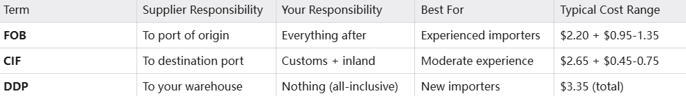 Choosing between FOB, CIF, and DDP isn't just about comparing prices—it's about understanding your total landed cost, operational capabilities, risk tolerance, and business priorities.